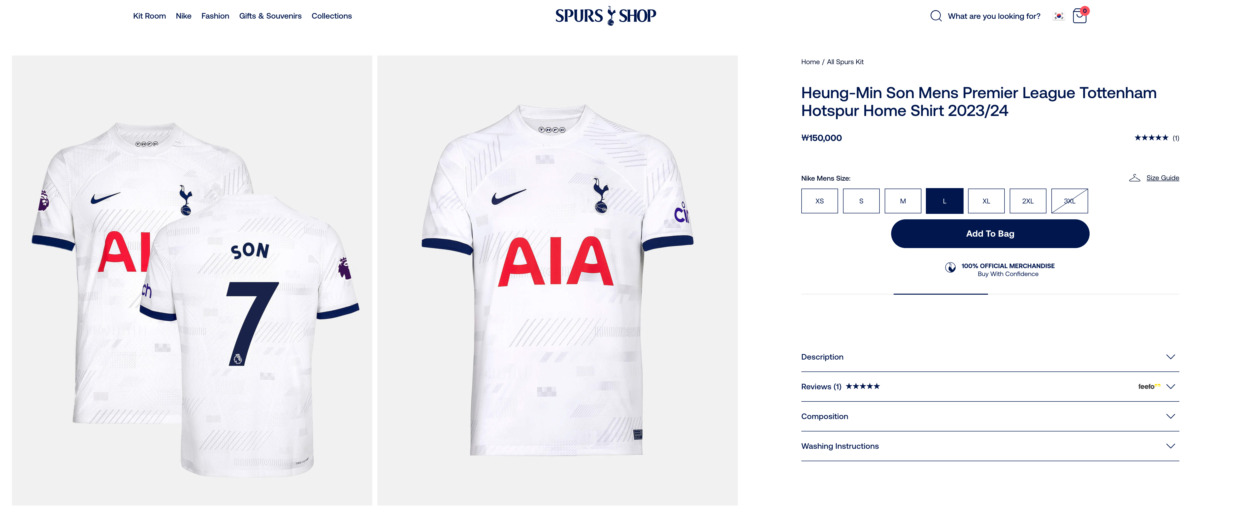 여기서 남성분들은 'Heung-Min Son Mens Premier League Tottenham Hotspur Home Shirt 2023/24'을 사시면 되는데, Elite가 붙은 거는 어센틱으로 선수용입니다. 여유가 있으신분들은 어센틱을 사시면 되겠네요. 참고로 가격은 현재 레플리카는 15만원, 어센틱은 21만원입니다. 여성분들은 Women, 아이들은 Youth를 선택하시면됩니다.