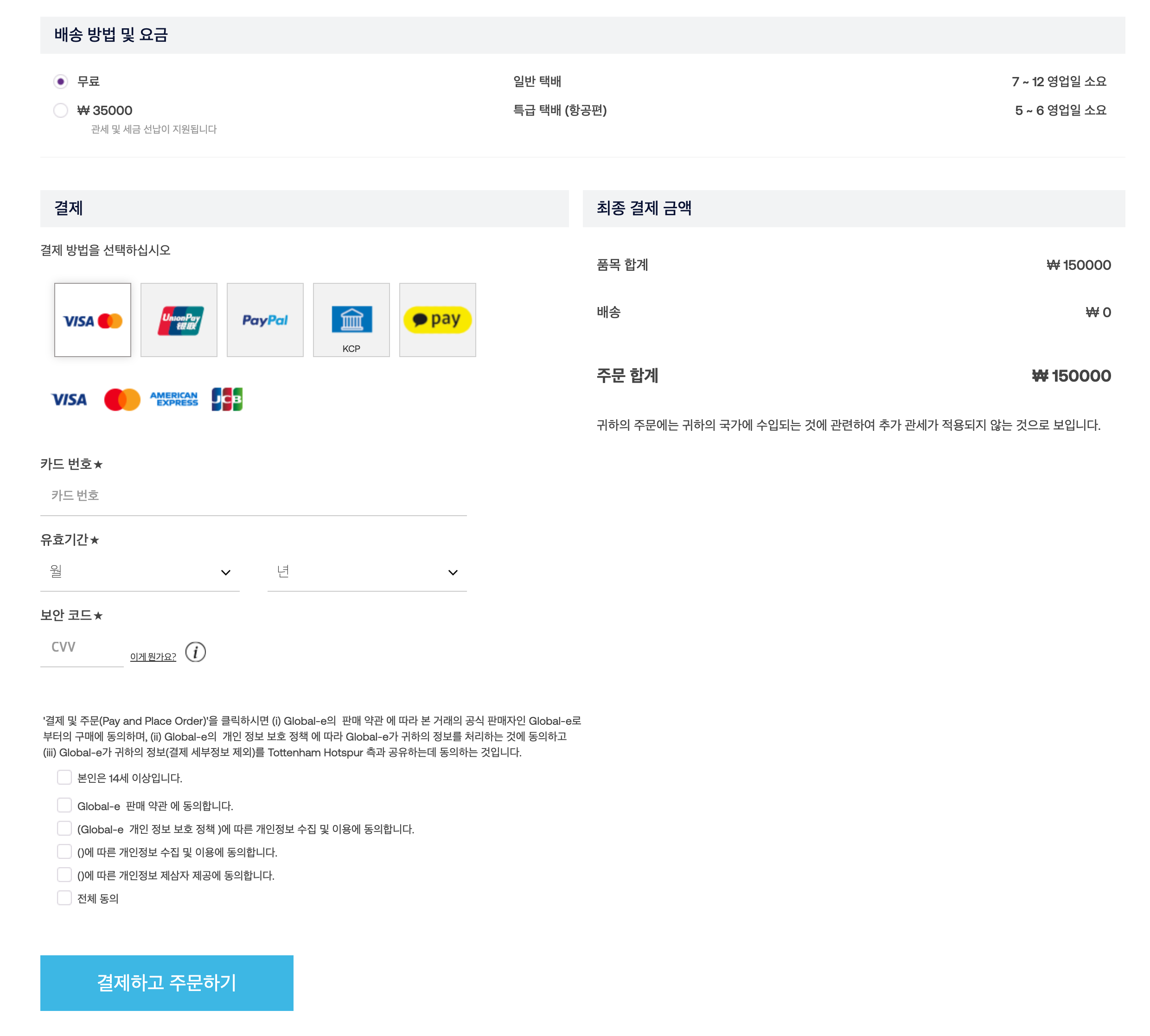 가장 중요한 결재 및 배송단계인데요. 손흥민 선수가 한국인이라서 한국어를 지원하고 있으니 걱정하지 않으셔도 됩니다. 거기다가 카카오페이로도 결재가 가능하고 직접배송하기 때문에 네이버에서 쇼핑하듯이 간단히 구매가 가능합니다.